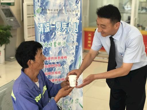 此外,在罗光明的建议下,淮南市分行以网点为依托,建立了19个“怡心小站”为户外工作者和当地群众送清凉,罗光明经常会邀请环卫工人、执勤民警、快递员、外卖员等前往“怡心小站”休憩并送上解暑茶水。“如今到邮储银行办业务,碰到下雨天还可以免费借伞,这里的服务太周到了。”王女士由衷地感慨。不仅在酷热天气为辛苦奔波的户外工作者送清凉,罗光明还在网点配备了诚信便民伞。每到下雨天,在淮南市的大街小巷上,一把把印有“中国邮政储蓄银行”的便民雨伞犹如一张张笑脸,一点一滴中温暖着万千大众。