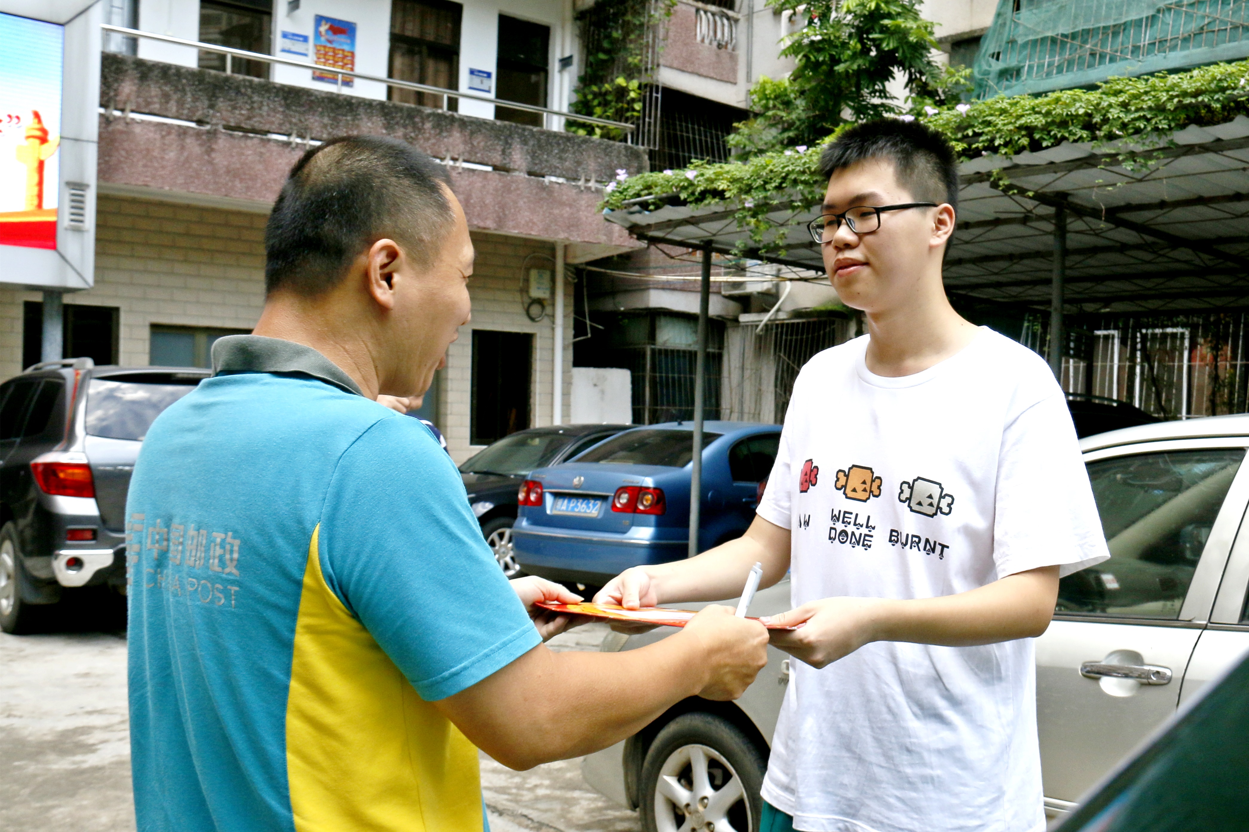 7月15日,海口考生李佳骏从邮政投递员手中接到来自中国民用航空飞行学院的高考录取通知书,“我可以实现当飞行员的梦想啦!”这也标志着2019年海南省首批高考录取通知书投递和邮寄工作正式拉开帷幕。
