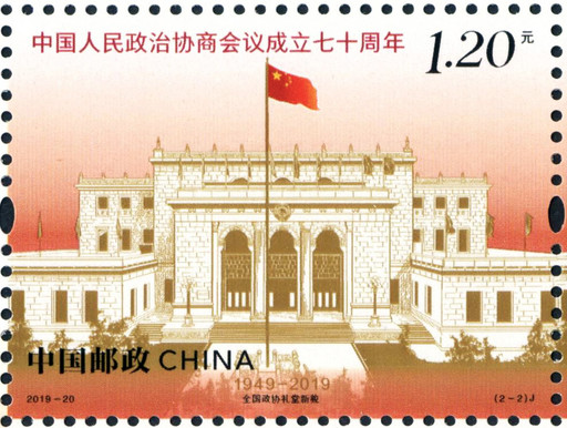 今年是新中国成立70周年,也是中国人民政治协商会议成立70周年。70年来,人民政协积极投身建立新中国、建设新中国、探索改革路、实现中国梦的壮丽实践,走过了辉煌的历程,建立了历史的功勋。为此,中国邮政于9月21日发行《中国人民政治协商会议成立七十周年》纪念邮票一套2枚。