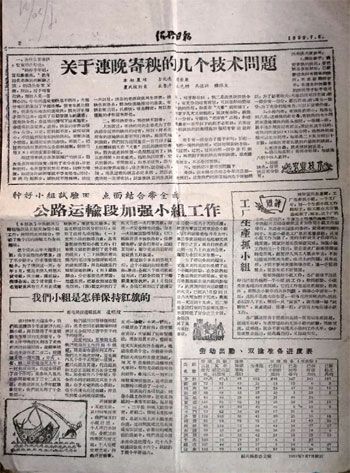 “7月19日早晨6时30分,十几部脚踏车飞一样骑进了火车站月台, 等小伙伴们准备停当, 从上海方面来的213次列车很快到站了。下车的旅客才刚刚检票,十几部脚踏车已经满载着邮袋飞奔而出……”1959年7月29日,《绍兴日报》上刊载了这样一则新闻。这份报纸,凌老收藏了60年。翻开早已发黄的旧报纸,工作往事一幕幕浮现在凌明煌的脑海中。这是绍兴市邮电局投递小组24名投递员的故事,凌明煌是小组长。每天清晨,投递员接到从火车上运载而来的报刊、信件后,就马不停蹄地开始投递了。