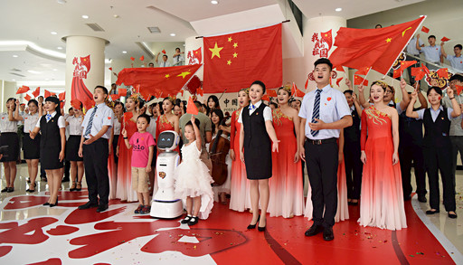“我和我的祖国,一刻也不能分割,无论我走到哪里,都流出一首赞歌”……在庆祝新中国成立70周年之际,邮储银行海南省分行党委组织全行员工与重点客户以“快闪”形式共同演唱《我和我的祖国》,以此歌唱伟大祖国,鼓舞全行员工在夺取全面建成小康社会新胜利和海南自贸区(港)建设的伟大进程中作出新的贡献。 □海南记者  梁磊  摄影报道