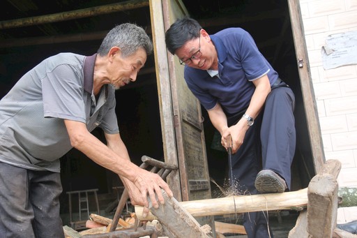 陈泽维帮助贫困户锯柴火。李蓉 摄