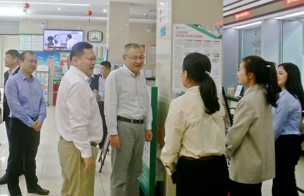 12月20日,省分公司总经理石纯斌和副总经理陈奋到海口市海府路营业所调研指导金融网点系统化转型工作。