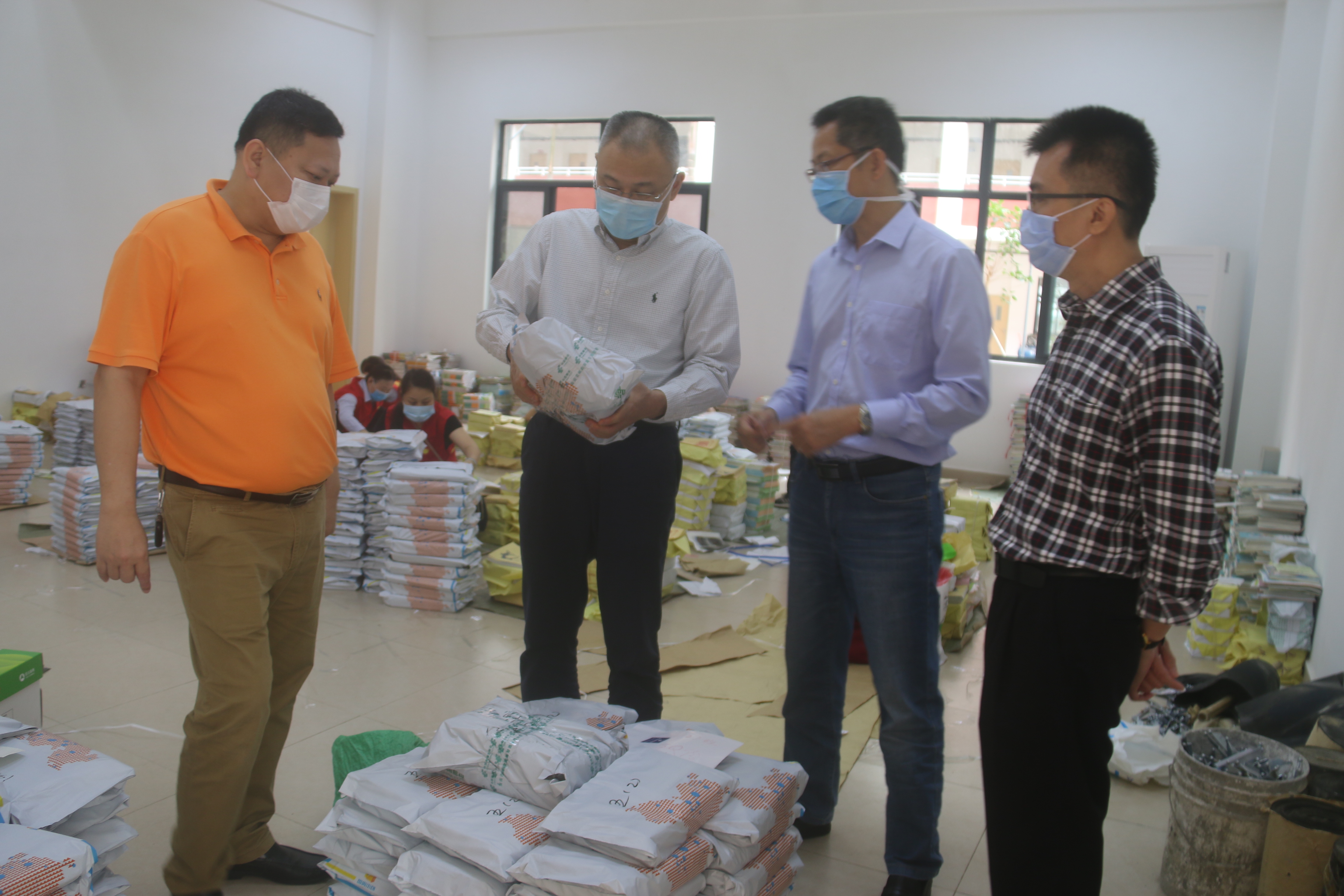 石纯斌还到海口市龙岐小学,看望慰问正在打包、收寄学生教材的投递员和工作人员,了解海口市分公司学生教材配送情况。