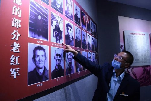 在腊子口战役纪念馆,向军涛领着我们来到一面展墙,指着其中的两张照片自豪地介绍:“这是我的奶奶高秀英,是一名光荣的红军战士。”通过向军涛的叙述,我们得知,向军涛的奶奶高秀英于1932年带着年幼的弟弟高步清一起参加了红军。从1932年到1936年,跟着红四方面军辗转各地,从妇女独立营营员到班长,一路走来,经历了诸多苦难。后因交战时,右手的四个指头被打断,伤势严重,无法继续前行,而散落在腊子口至茨日那一带。