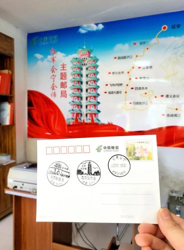 近年来,甘肃白银市和会宁县努力打造红色文化,当地邮政成立了会宁会师主题邮局,开发了会师主题邮品,通过邮品宣传、传承会师精神。一位骑行到会宁的骑友特意来到主题邮局,在会宁会师明信片上盖上邮戳,并将明信片投入邮筒。“在明信片上盖上邮戳,才算是真正到会宁打卡过,看见明信片就会想起红军会宁会师这段历史。”