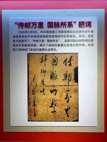 特别是在新民主主义革命时期,毛泽东题词“人民邮电”,周恩来题词“传邮万里 国脉所系”等珍贵文物,充分反映了邮政在社会发展中的重要地位和作用,指出了邮政事业为人民服务的性质宗旨,明确了邮政人的初心使命。