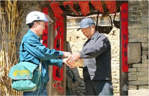 于彦富给张家庄村村民任明海送来包裹。