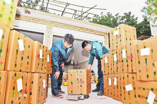 下午3点多,邮政工作人员陆续前往各代收点收件装车。负责龙安乡快递收寄的潘高雄告诉采访组,进入龙安柚销售季以来,高峰期龙安乡每天通过邮政寄出去近千件邮件,经常忙到晚上九十点钟才能结束一天的工作。