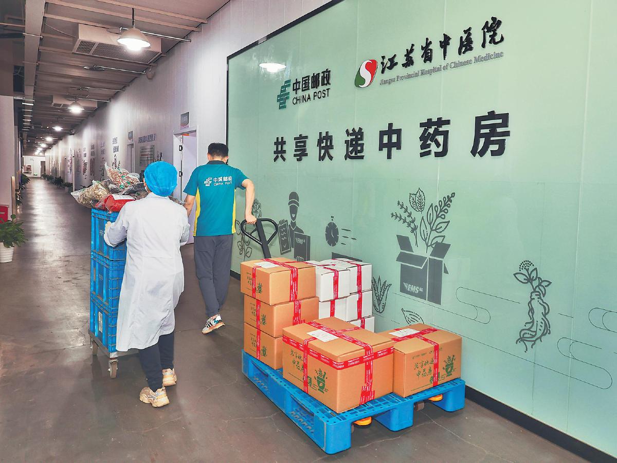 江苏邮政与江苏省中医院联手建成“共享快递中药房”,缓解患者焦虑,提升医院效能。 □柏滨丰 摄