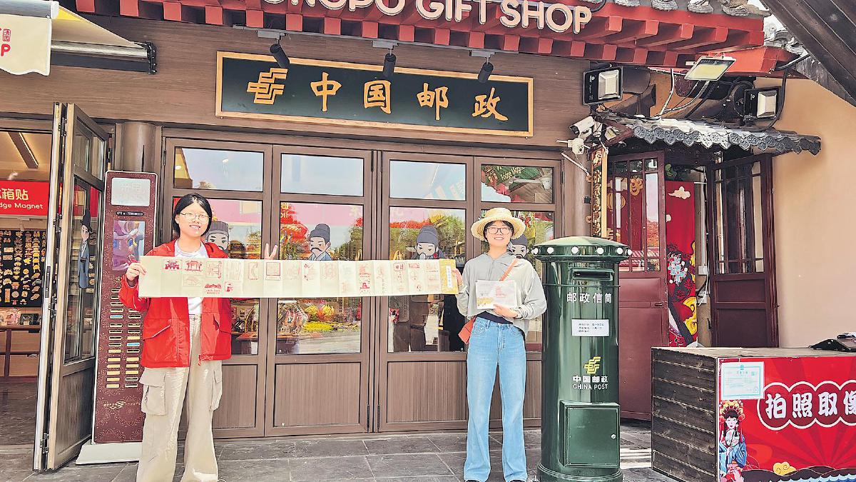 主题邮局推出了一系列特色活动,让游客全方位地感受邮政文化与宋文化的魅力。开封邮政精心设计了“八朝古都通关文牒”以及16枚具有开封特色的纪念邮戳,供游客沉浸式打卡。一位位游客手持“通关文牒”,兴奋地排队等待盖戳,持集齐邮戳的“通关文牒”还可到主题邮局免费领取精美明信片。这种方式,不仅让游客收集了开封的名胜古迹,更让游客沉浸式穿越进了开封的历史。“文化沉浸感强”“有纪念价值”“有创意”……已成为游客对清明上河园主题邮局的高频评价词。