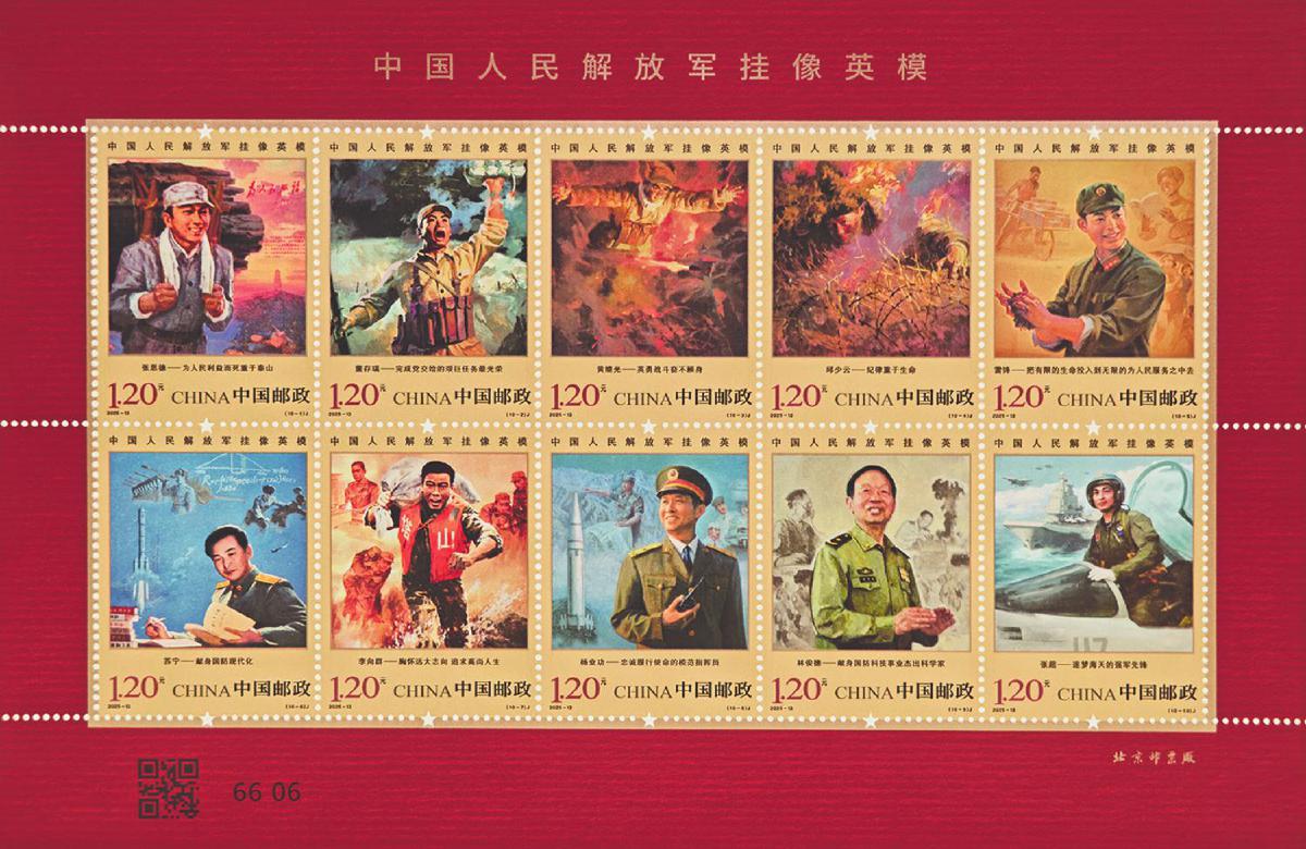 8月1日,《中国人民解放军挂像英模》纪念邮票发行。该套邮票一套10枚,展现的英模人物分别是:张思德——为人民利益而死重于泰山,董存瑞——完成党交给的艰巨任务最光荣,黄继光——英勇战斗奋不顾身,邱少云——纪律重于生命,雷锋——把有限的生命投入到无限的为人民服务之中去,苏宁——献身国防现代化,李向群——胸怀远大志向追求高尚人生,杨业功——忠诚履行使命的模范指挥员,林俊德——献身国防科技事业杰出科学家,张超——逐梦海天的强军先锋。
