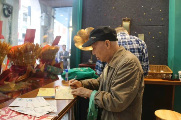 邮迷王先生正全神贯注地书写明信片,准备寄给全国各地的邮友。他说:“盖着海南邮戳的明信片寄出去,远方的朋友收到明信片后仿佛身临其境感受到海南风情。另外,外地的游客前来这里打卡,并从这里寄出盖有海南邮戳的明信片,这同样是记录他们足迹的一种美好方式。主题邮局的开业,也为我们本地邮迷搭建了一个交流的平台,在这里的交流更是一种全新的体验。”