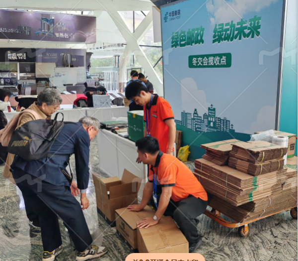 为精准对接展会需求,海口邮政提前部署,在会展中心登录大厅设立冬交会临时邮局,提供包裹收寄、纪念封邮寄、纪念戳加盖等一站式服务。同时,在4号馆、6号馆出入口及8号馆扶梯下空地增设3处包裹收寄点,进一步扩大服务覆盖面。现场还展示循环箱、全生物降解竹膜袋等新型包装产品,传递海南邮政绿色发展理念与实践,提升绿色邮政的品牌影响力。