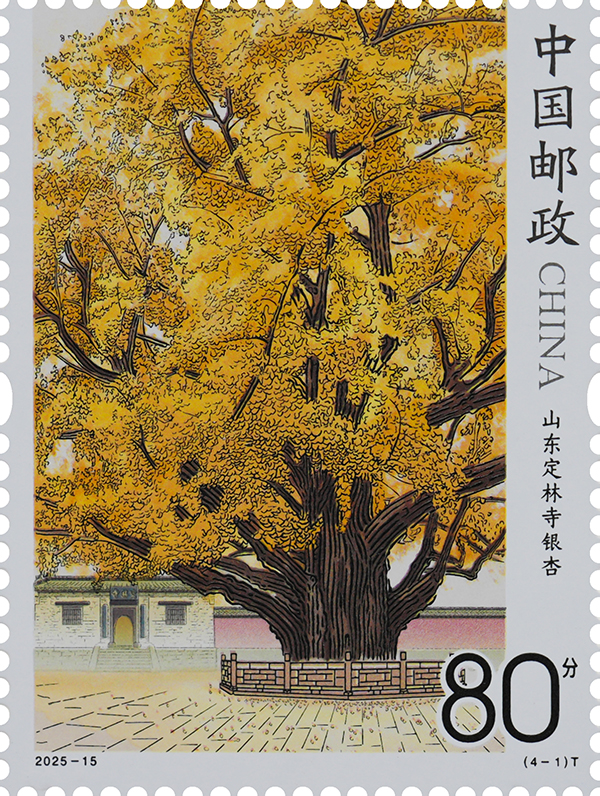中国邮政定于2025年8月15日发行《古树名木》特种邮票1套4枚,邮票图案名称为:山东定林寺银杏、四川翠云廊剑阁柏、山西晋祠国槐、浙江普陀山普陀鹅耳枥。全套邮票面值4.00元,计划发行数量为470万套。