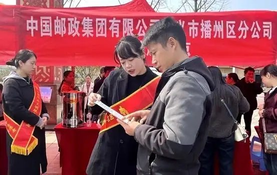 播州区:乌江寨站“劳务直通车”专列启动仪式现场,播州邮政设立金融便民服务点,为务工人员提供业务咨询、现场开卡、反诈知识宣讲等服务,并送上温热姜茶,让返岗群众感受到家乡的温暖。