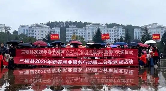三穗县:2月24日和2月26日,两场“点对点”劳务输出欢送仪式在将军广场举行,500余名务工人员搭乘专车奔赴广东、浙江、福建等地。三穗邮政组建党员与青年志愿者服务队,现场设立便民服务点,累计发放爱心礼包200余份,内含矿泉水、牛奶、面包、方便面等物资。